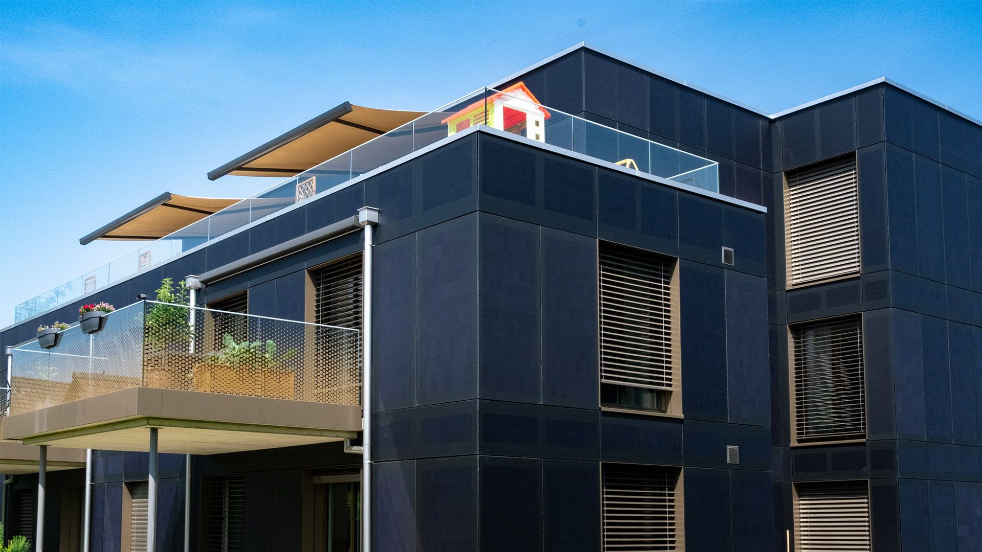 Každý dům má nejen střechu, ale i fasádu. I ta může vyrábet čistou energii ze slunce! Fotovoltaická fasáda je velice efektivní při nízkém zimním slunnce nebo na večer. Špičkové designové solární fasády dodáváme ve spolupráci se švýcarským výrobcem MEGASOL AG.
