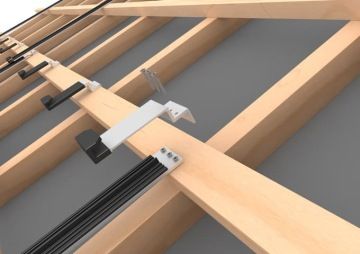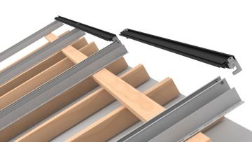 Upevňovací háky jsou přišroubovány ke střešním latím. Těsnící lišty se zaháknou. Solární moduly se vkládají pomocí procesu vkládání. Následná demontáž je možná bez omezení.